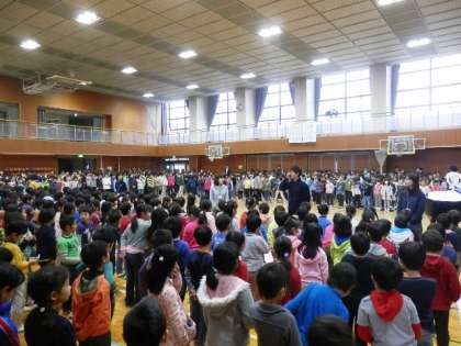 2学期の最後の集会は音楽集会でした。今月の歌は「たきび」です。