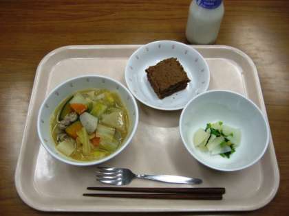 ほうとう かぶのゆずかけ おからケーキ 牛乳