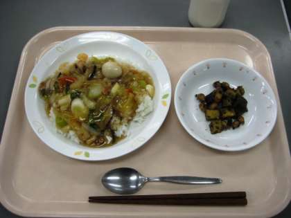 中華丼 お豆かりんとう 牛乳