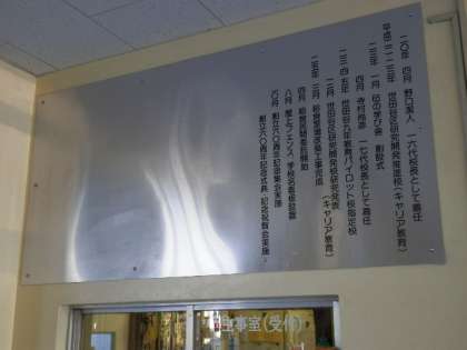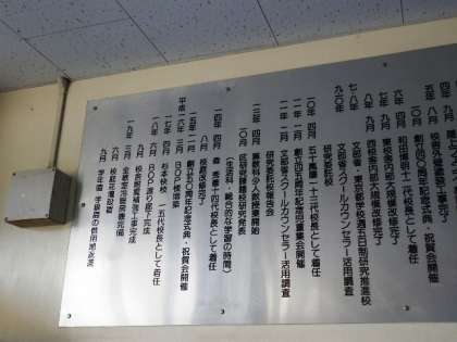 昇降口をはいると明正小学校沿革史の掲示板があります。50周年で終わっていたのですが、ようやく60周年まで出来上がりました。主事室の上まで長くなりました。