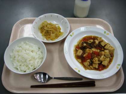 ごはん 家常豆腐 白菜の中華サラダ 牛乳