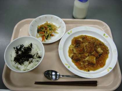 ごはん ひじきのふりかけ 生揚げのそぼろあんかけ おひたし 牛乳