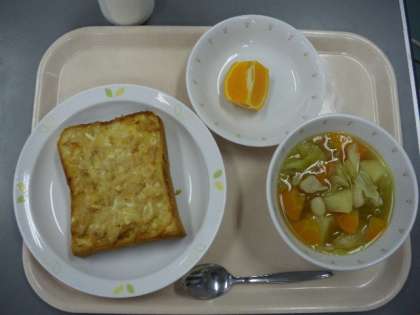 ツナトースト 白いんげんの田舎風スープ ぽんかん 牛乳