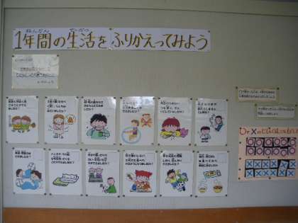 3月の保健室前の掲示は、『1年間の生活を振り返ろう』です。