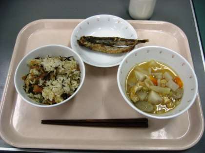 五目ごはん ししゃものからあげ ご汁 牛乳