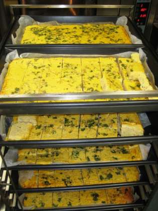千草焼きは、たくさんの具と卵を混ぜて、三つ葉を上からかけて、スチームコンベクションオーブンで焼き上げました。