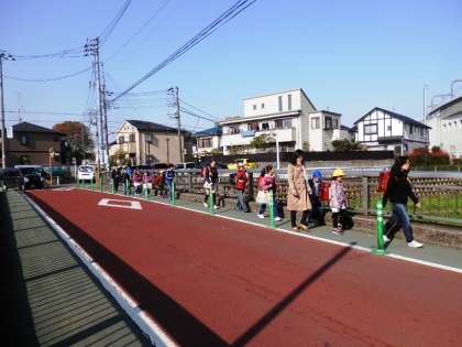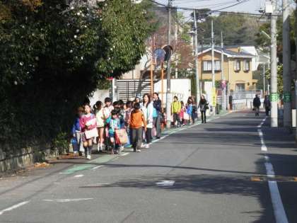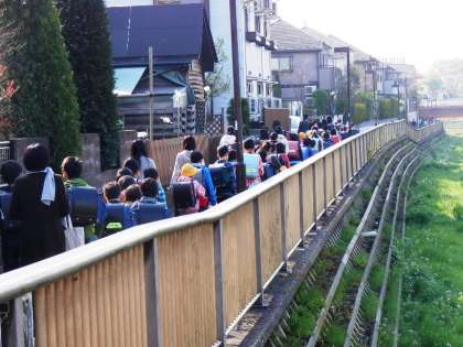 新学期が始まりました。元気な1年生と一緒に集団登校です。班長さんよろしくお願いしますね。今日は、上野田橋からどんぐり坂を上がり、不動橋を渡ってくる班を迎えに行きました。上野田橋は交通量も多く、旗振りの保護者の方も大変です。子どもだけでなく、保護者の皆さんの安全も大切です。よろしくお願いいたします。