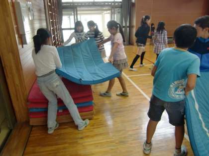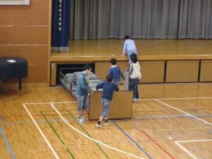 1年生を迎える会が終わった後は体育館の片付け作業です。