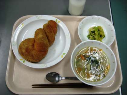あげパン 肉団子入り春雨スープ 野菜の中華風味 牛乳