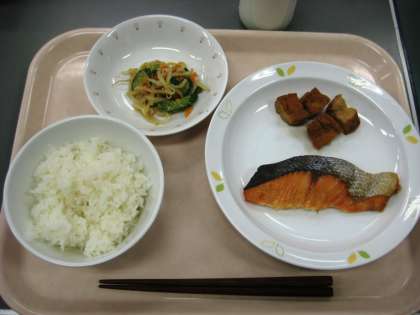 ごはん さけの塩焼き 厚揚げの含め煮 ごま酢かけ