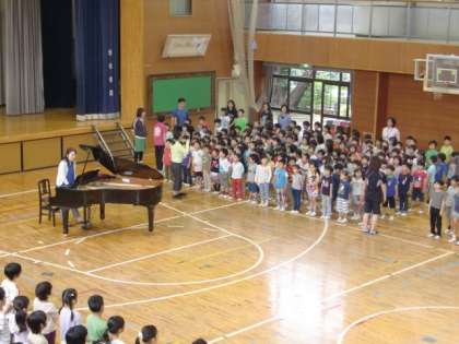 来週末の運動会に向けて運動会で歌う歌の練習をしました。