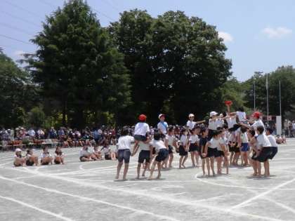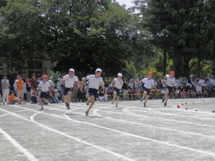 6年生の騎馬戦は迫力満点です。力いっぱいが伝わってきます。100m走も、力強さが一段と増してきました。