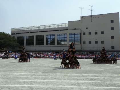 運動会最大の演技といえば6年生の組体操です。黒いTシャツが土にまみれていくほどカッコよくなります。5年生は来年は自分たち、4〜1年生は自分たちもきっとできる。そんな思いが伝わってきました。