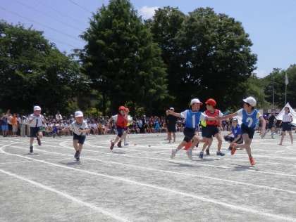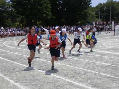 3・4年生の選手が走りました。一人半周ずつ走ります。みんなの応援で、すごくがんばれました。