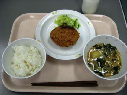 ごはん ムロアジのメンチカツ きゃべつ みそ汁 牛乳
