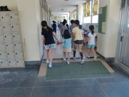 今年度初めてのたてわり班活動だったので、1年生は上級生が教室まで迎えに来てくれていました。