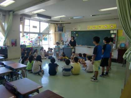 教室では、自己紹介が行われ各班で決めたゲームを楽しそうに行っていました。