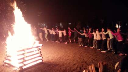 1日目最後のイベントはキャンプファイアでした。レク係を中心に楽しい時間を過ごしました。