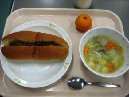 ドライカレーサンド ポトフ 冷凍みかん 牛乳