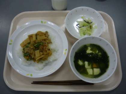 スタミナ丼 わかめスープ キャベツの塩こんぶかけ 牛乳