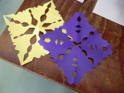 仮面のようなかざりができる子もいれば、雪の結晶のようなかざりができる子もいました。