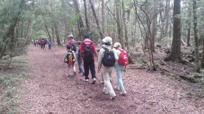 富士山の樹海にあるハイキングコースを歩きました。約30分余りの道でしたが、根っこがあったり岩があったりで歩くのが大変でした。