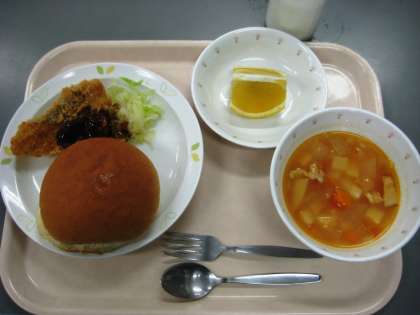 セルフフィッシュサンド ミネストローネ 美生柑 牛乳