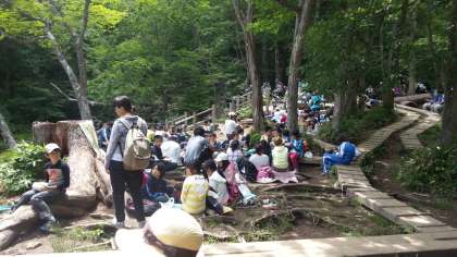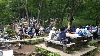 青空の下での昼食です。とても天気がよく汗もかきましたが、風は心地よいです。