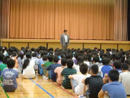 体育館では校長先生から10月半ばで登校する日が残り半分になるという話がありました。この半年、4月にたてた目標をどのくらい達成できているか、また残りの半年でどのように頑張っていくかというお話でした。