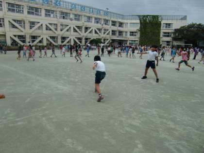 校庭では低学年生が長縄に挑戦していました。まだまだ6年生程跳べるわけではありませんが、少しずつ跳べるように頑張っていました。