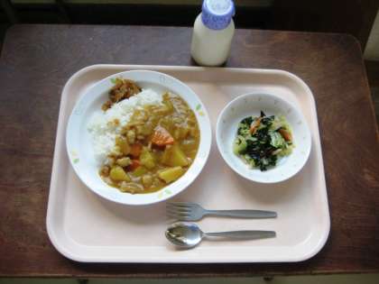 チキンカレーライス 福神漬け 大根サラダ 牛乳