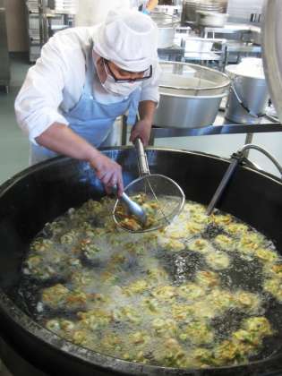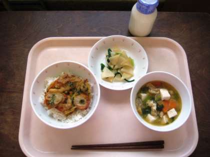 かきあげ丼 豆腐汁 かぶのレモンじょうゆかけ 牛乳