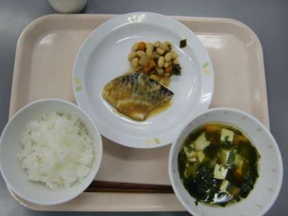 ごはん さばのみそ煮 五目豆 すまし汁 牛乳