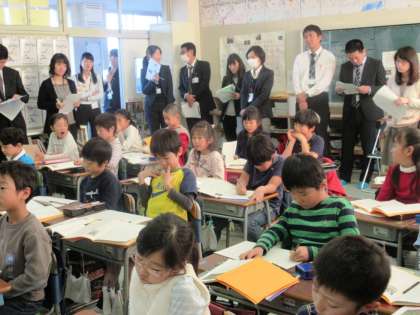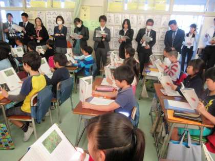 今日は2年1組で、世田谷区の他校の先生方の研修会となる研究授業を行いました。国語の学習で、「たねのたび」という単元です。どの子も元気に手を挙げ発言していました。