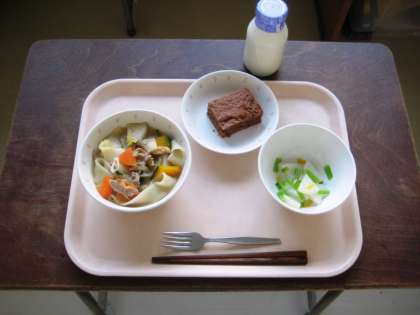 ほうとう かぶのゆずかけ おからケーキ 牛乳