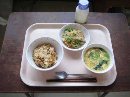 中華おこわ 春雨サラダ 中華風コーンスープ 牛乳