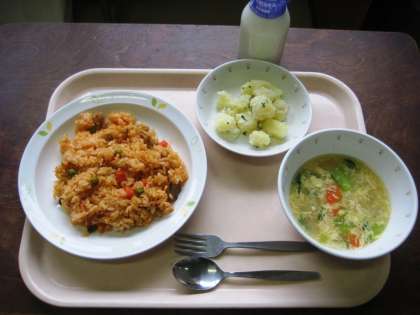 チキンライス チーズのふわふわスープ パセリポテト 牛乳