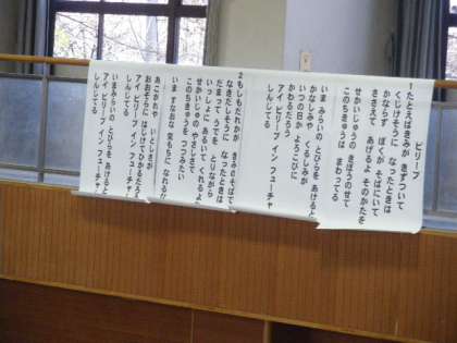 6年生を送る会で歌う、「ビリーブ」を歌いました。