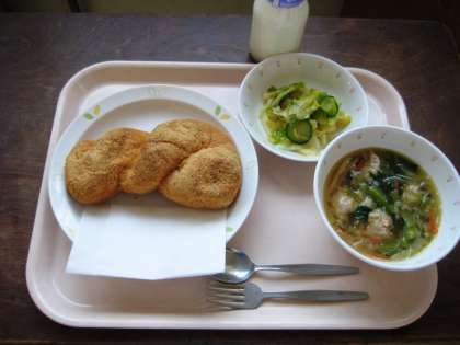あげパン 肉団子入り春雨スープ 野菜の中華風味 牛乳