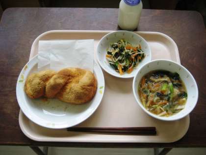 あげパン 肉団子入り春雨スープ 塩ナムル 牛乳