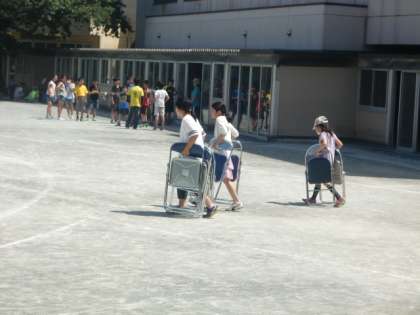 明日の運動会に向けて5,6年生が準備を進めていました。