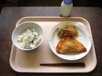 わかめとじゃこのごはん ジャンボぎょうざ 春雨サラダ 牛乳