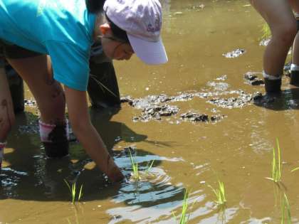 「苗を3本もって、深くまで植えること」と教わり、全員が田植えを経験してきました。