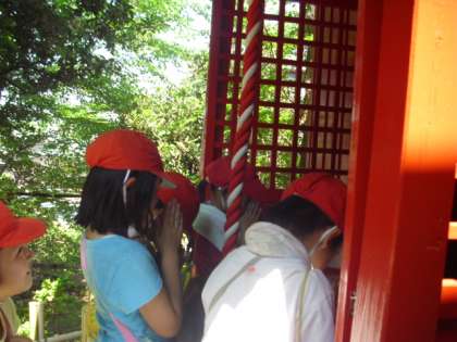 喜多見不動堂では熱心にお参りしている子もいれば、竹林を見て先日行った竹の子掘りを思い出している子もいました。
