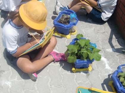 今日は朝顔の成長を観察しました。