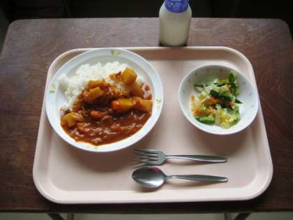 ハッシュドポークライス アスパラガスのサラダ 牛乳