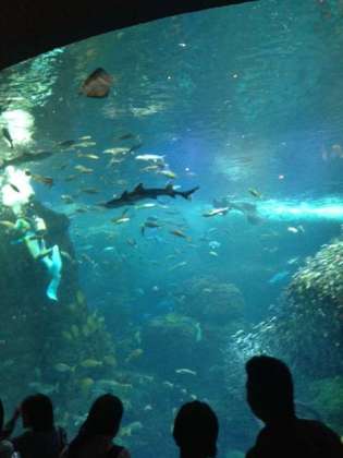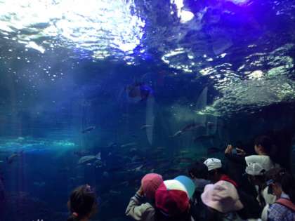 お弁当を食べ終わり、クイズを解きながら水族館の中を見て回っています!