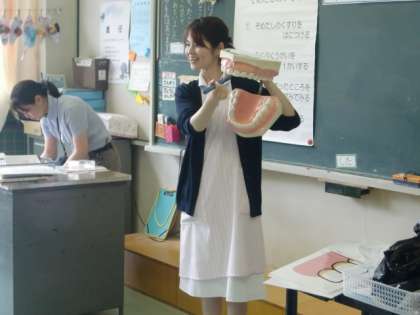 歯科衛生士さんから歯みがきの仕方を教わりました。
