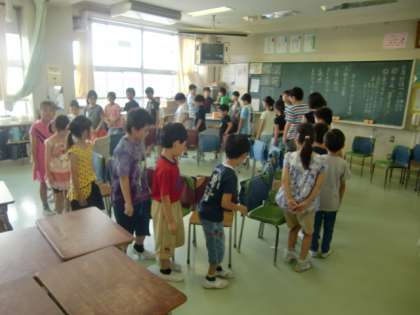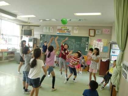各教室では、6年生がリーダーになり、イス取りゲーム、フルーツバスケット、風船バレーなど、様々な遊びを通して1年生から6年生まで交流を深めていました。