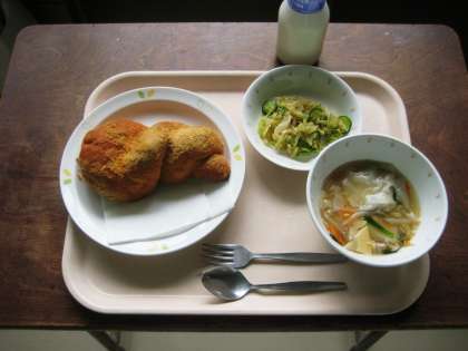 あげパン ワンタンスープ 野菜の中華風味 牛乳